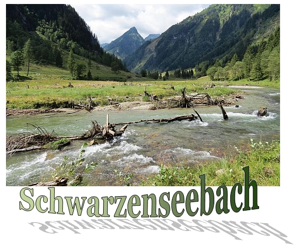 Das Revier beginnt beim Kleinkraftwerk nach dem Ortsteil Hinterwald. Der Einstieg zum Bach ist hier einfach und die erste Präsentation einer Trockenfliege wurde mit dem Anbiss einer Regenbogenforelle belohnt. Wir waren sehr erstaunt, hier oben, auf ca. 1000 m Seehöhe mit wild aufgewachsenen Regenbogenforellen konfrontiert zu werden. Schon jetzt war nicht zu übersehen, dass im und am Schwarzenseebach alle Strukturen eines völlig naturbelassenen Gebirgsbaches vorhanden sind. Viel Totholz als Überbleibsel der Schneeschmelze, teilweiser Uferbewuchs von Büschen und Bäumen, Sandablagerungen, Kiesbänke, Gumpen, Uferunterspülungen, Rieselstrecken, viele Kurven, Mäander und alles eingebettet in saftige Almwiesen, die in Ufernähe auch etwas sumpfig werden. Ein wunderbar abwechslungsreiches Gewässer für Fliegenfischer!